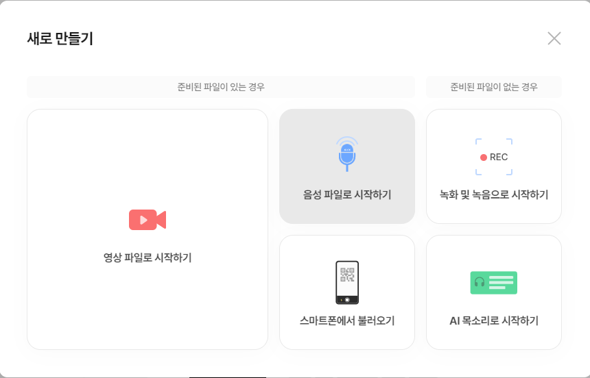 3. 음성 파일로 시작하기를 클릭하시고, MP3 스크립트를 선택합니다.