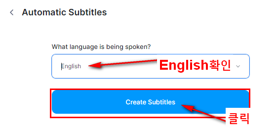 6. 언어를 English로 확인하고 Create Subtitles를 클릭한다.
