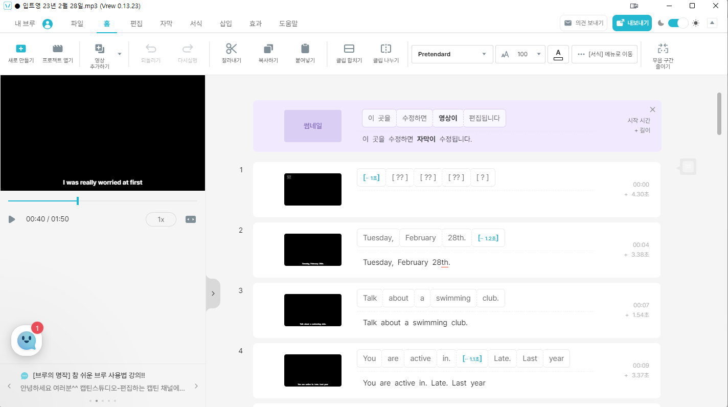 * Vrew를 이용하는 방법 ( 프로그램 설치해야함 )