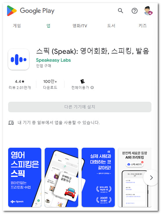장점은 확실합니다. 앱의 이름처럼 '스픽' 언제나 영어로 말할 수 있는 기회를 준다는 겁니다.